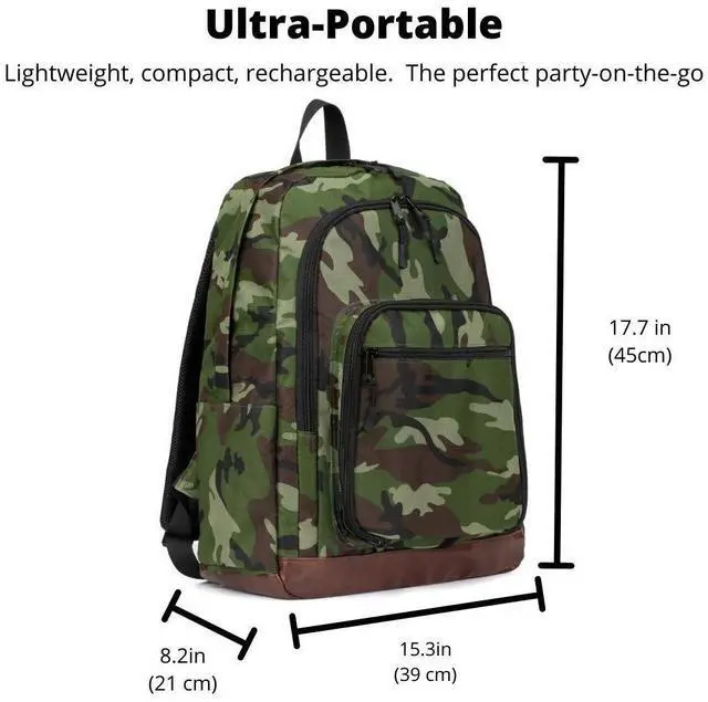 Water-Resistant Removable Speakers: Weighs less than 3 lbs and has a removable 20-watt speaker with compelling design in a water-resistant backpack. ^^ Rechargeable Battery + Built in Power Bank Charges Your iPhone / Android /