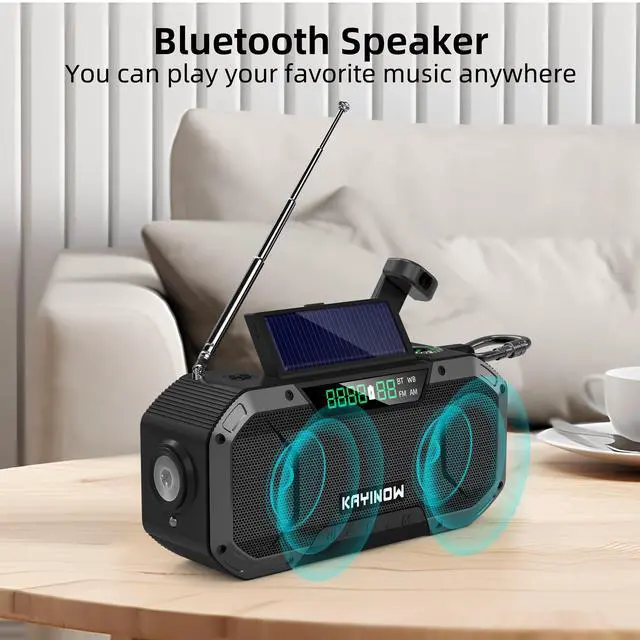 The retractable antenna boosts signal reception dramatically, ensuring you never miss critical weather warnings. With integrated FM/AM/WB/NOAA fullband reception, it supports one-touch automatic scanning to lock onto weather disaster broadcasts instantly. Manual volume control lets you adjust sound clarity, while holding the bottom SOS button triggers alarm+flashing red lightquickly drawing rescue personnels attention in emergencies. ^^ Bluetooth 5.0 delivers extended-range connectivity, pairing seamlessly with phones/tabletsplay music during shelter stays or outdoor checks, balancing practicality and comfort. Intuitive buttons and a clear interface ensure easy operation. Combined with the product manual, even seniors and children can quickly learn to use it to access news broadcasts or activate the SOS alarm.