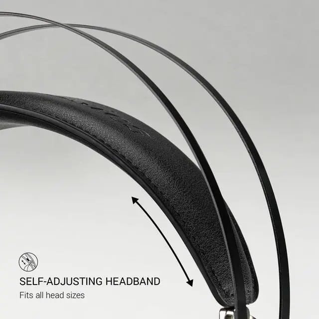 SELF-ADJUSTING HEADBAND: The vegan leather headband is reinforced with a manganese spring steel outer band, and is purposely designed to distribute the weight and pressure evenly on most head shapes. Designed for your comfort and long listening sessions.