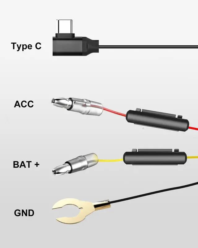 It automatically cuts off power when the voltage drops to 11.6V, preventing battery drain and ensuring your vehicle can start ^^ High CompatibilityThe INSEETECH Hardwire Kit for mirror dash cams features a 11.5FT / 3.5M cable and supports 12V-24V input. It efficiently converts various vehicle power supplies into 5V 3A, ideal for powering the INSEETECH 11" 3-Channel Mirror Camera ^^ Simple InstallationThe INSEETECH Hardwire Kit offers an easy setup, eliminating the need for the cigarette lighter socket. Just plug the mini USB into the INSEETECH DashCam01 mirror, connect the black wire (GND) to the vehicle's metal frame, the yellow wire (BAT) to the positive terminal, and the red wire (ACC) to the ACC power supply.