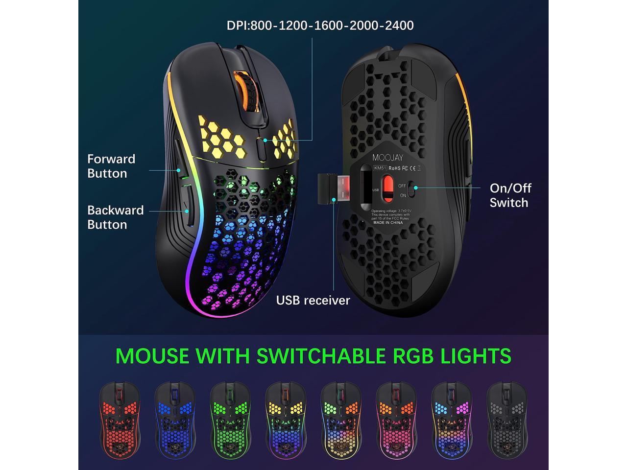MOOJAY Wireless Keyboard and Mouse RGB Backlit Combo, Rechargeable 2.4G Light Up Cordless Gaming Keyboard with Ergonomic Wireless Wired Dual Mode Mice Set, for PC/Laptop/Windows/Mac - Black