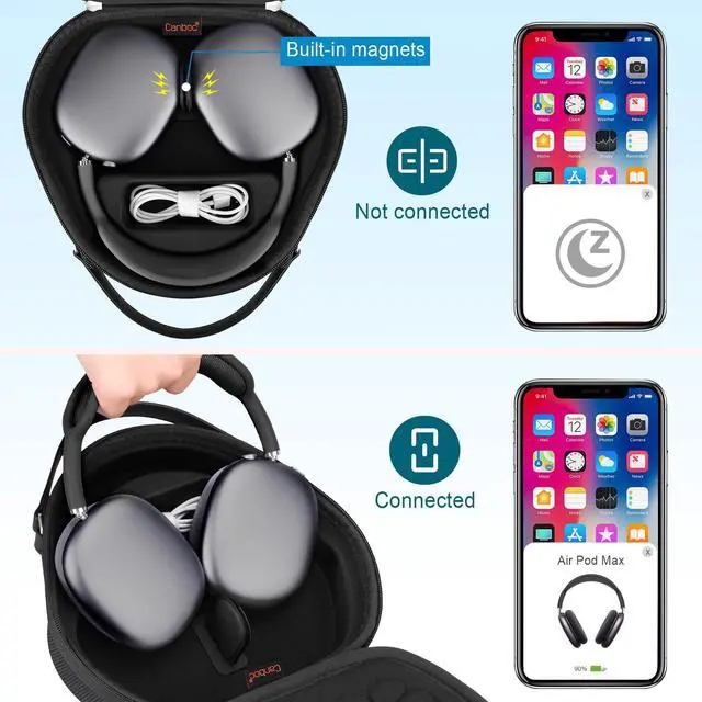Perfect StorageCase Only! (Headphone and accessories are not included). Hard travel carrying smart case is designed for apple airpods max headphone equipment.The magnetic device in black mini pads allows the Airpods Max to enter the dormant state.