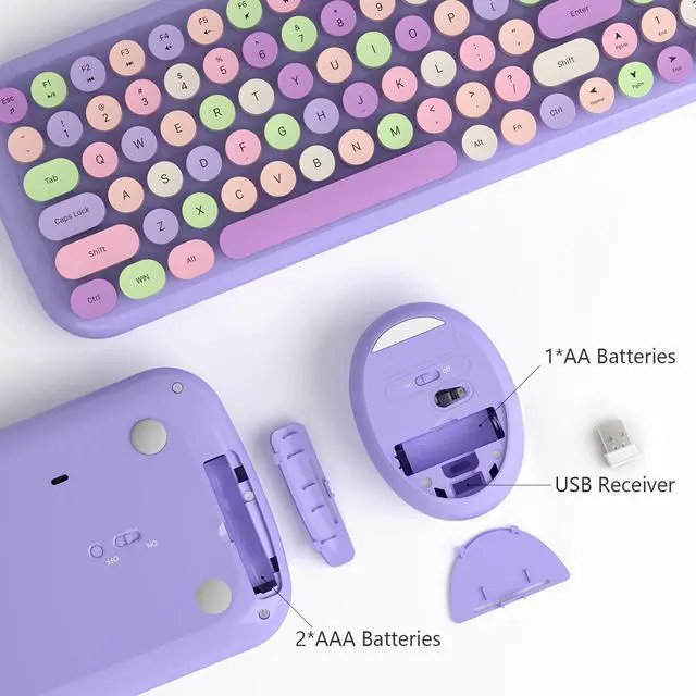 Lilac Purple Colorful Wireless Keyboard and Mouse Combo2023 is the most popular color, to attract more people's eyes, give you a different Typing feel, enjoy a different keyboard experience, create a colorful desk, and be a pleasant mood for you!