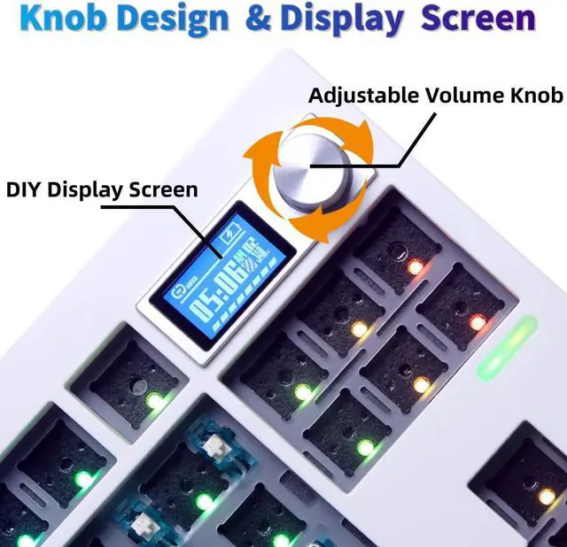 Custom Mechanical Keyboard with Display Screen&KnobGMK87 is a stylish, simple, and powerful RGB Tri-Mode mechanical keyboard. Whether you are a professional gamer or a keyboard enthusiast, this DIY keyboard kit with LED display and knob allows you freedly to DIY the look, click, and sound to your liking. It is an ideal choice for customizing and modifying your keyboard for yourself or your friends and family