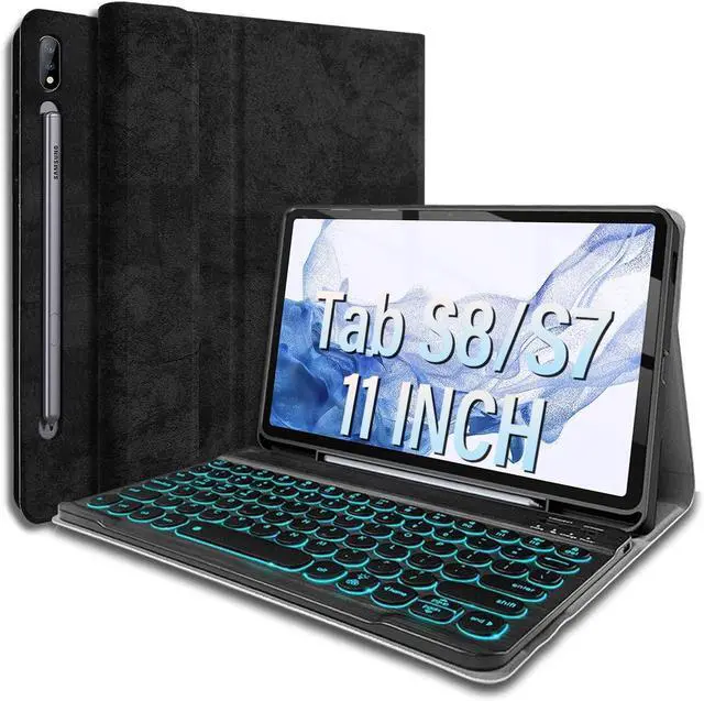 Backlit Keyboard Case for Samsung Galaxy Tab S8 2022/Tab S7 2020 11 inch(Model SM-X700/X706/T870/ T875/T876), Wineecy 7 Colors Light Detachable Wireless Keyboard & PU Folio Stand Pen Holder Cover, Black