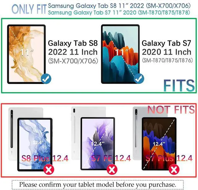 Compatibility ModelExclusively designed for Galaxy Tab S8 11 inch Model SM-X700/X706 2022 Release and Samsung Galaxy Tab S7 11 inch Model SM-T870/T875/T878 2020 Release Tablet. it is not compatible with Samsung any other model device. Please kindly check before purchase.