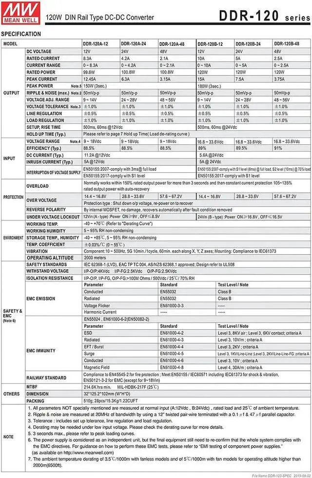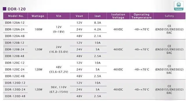 Model DDR-120A-48 Input Range: 9-18Vdc, Output: 48Vdc 2.1A 100.8W