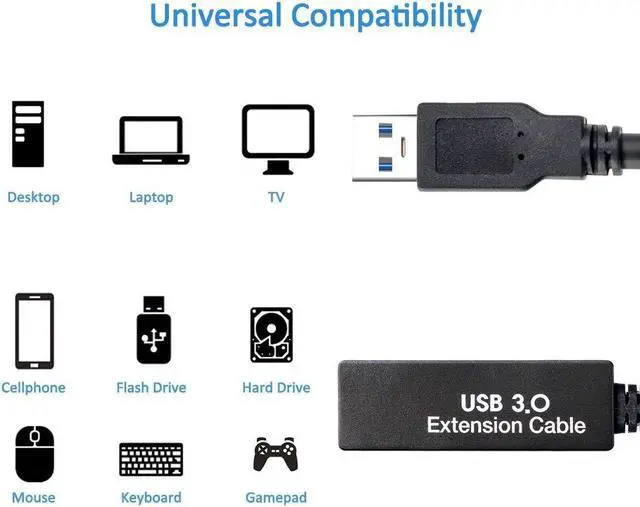 USB 3.0 Extension Cable Built-in 2 signal amplification chips ensure no signal attenuation to ensure uninterrupted data transmission. Backward compatible with all other USB standard devicesincludeOculus Rift, HTC Vive,Webcam,HDcamera,USB 3.0 HUB,flash drives, Wifi antennas, Scanner,Samsung Odyssey Plus,external hard drives Etc)