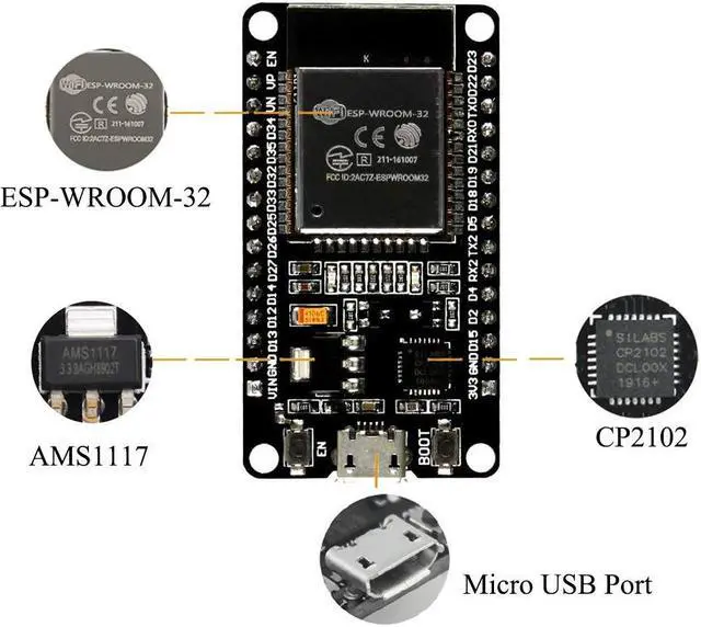 The ESP32 integrated with Antenna switches, RF Balun, power amplifiers, low-noise amplifiers, filters, and management modules, and the entire solution occupies the least area of PCB. 2.4 GHz Wi-Fi plus Bluetooth dual-mode chip, with TSMC Ultra-low power consumption 40nm technology, power dissipation performance and RF performance is the best, safe and reliable, easy to extend to a variety of applications.