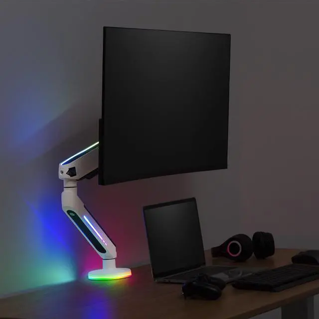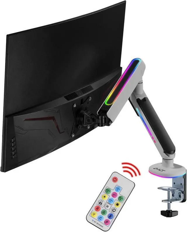 AVLT RGB Lights Single 13-34 Monitor Arm Desk Mount Built-in 179 Modes & 17-Key Remote Controller Fits One Flat/Curved/Ultrawide Screen Height Swivel Tilt Adjustable Monitor Stand