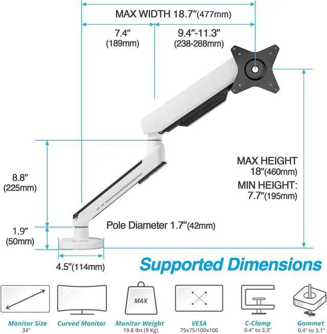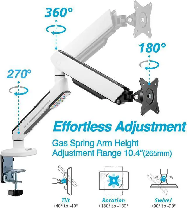 Ergonomic Adjustability: Height adjustable from 7.7 to 18 inches with mechanical spring arm tested for 10,000 motion cycles; offers tilt, swivel, rotation, and arm extension for optimal viewing comfort.