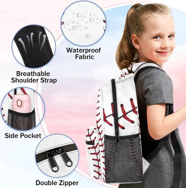 AUUXVA Baseball Stitches Laptop Backpack Kids Girls Boys Bookbag School Travel Tablet Back Pack Students Schoolbag For Elementary Junior High School College Hiking Fits 13 14 14.5 Inch