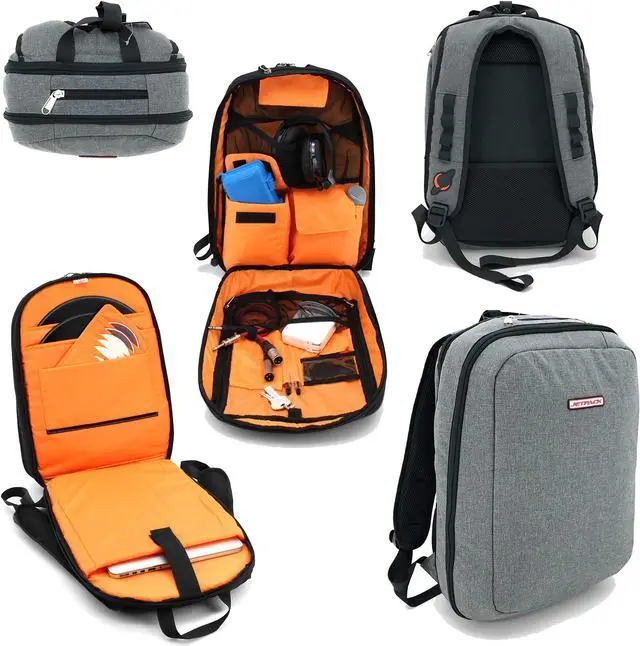 Jetpack Slim Backpack for DVS, Mobile, or Club DJ Gig Set, Bag Carry Laptop, Stand, Tablet, Headphone, Vinyl Records, USB Mobile Devices, Needle Case, Cables, Microphone & More. TSA Compliant (Gray)