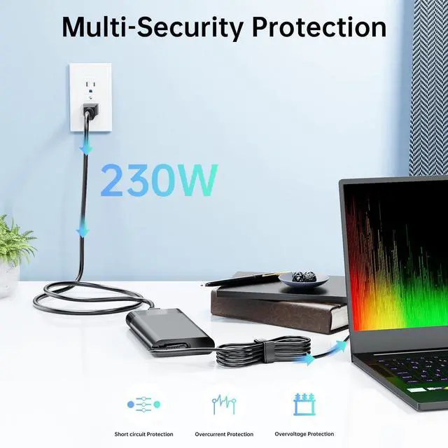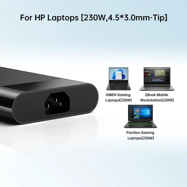 Output Max: 19.5V 11.8A 230W, 4.5mm Blue-Tip. Compatible with HP 230W Laptop Charger. (This charger cannot replace the 280W charger, if your laptop uses a 280W AC adapter do not use this charger.)