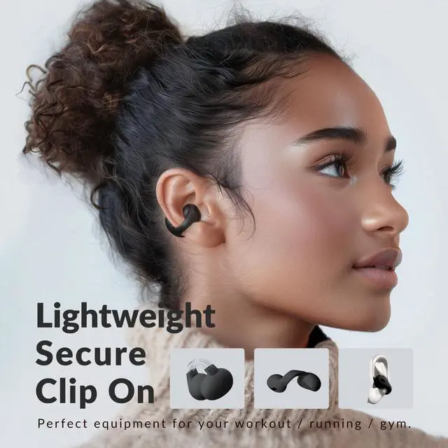 [Comfort to Clip On] Discover the perfect blend of comfort and customization with our open-ear wireless headphones. Designed with adjustable memory steel wire and skin-friendly silicone, they ensure a secure, irritation-free fit for any ear size. Enjoy your audio safely with our built-in hearing protection, ideal for prolonged use.