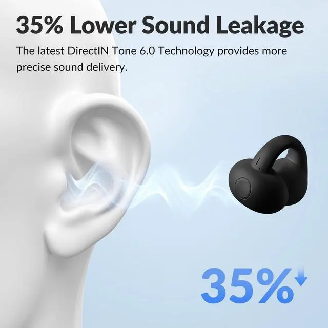 TONEMAC Q7 Wireless Open-Ear Headphones Bluetooth 5.3 Earbuds, Ultra Lightweight for Comfortable Clip On, DT 6.0 Technology for Personal Deep Bass, 34H Playtime Earphones, USB-C Quick Charge -Black