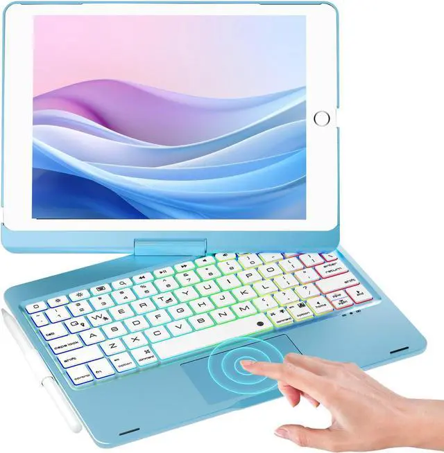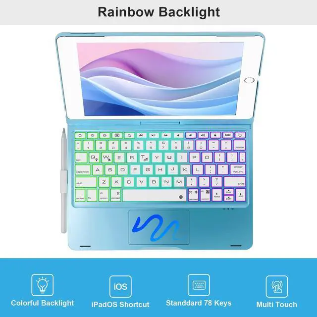 NOKBABO iPad 9th Generation Case with Keyboard 360° Rotatable Touchpad and 7 Color Backlight & Pencil Holder for iPad 9th/8th/7th Gen 10.2 inch & iPad Air 3rd Gen/iPad Pro 10.5 inch - Bright Blue