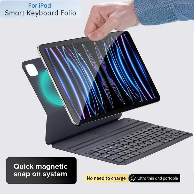 • WHY SMART KEYBOARD FOLIO Thin, light, Sleek and compact, it performs like a traditional laptop keyboard, it also provides front and back protection for your ipad. No charging required. Simply attach it and start typing.