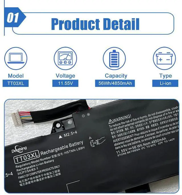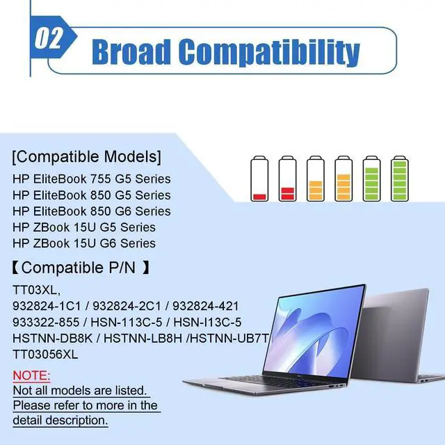 ImportantThe package includes: 1X TT03XL battery, instruction manual. Before purchasing, please open the back cover of the laptop to confirm the battery model and capacity.