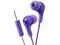 PURPLE GUMY In ear earbuds with stay fit ear tips and MIC. Wired 3.3ft colored cord cable with headphone jack. Small, medium, and large ear tip earpieces included. JVC GUMY HAFX7MV