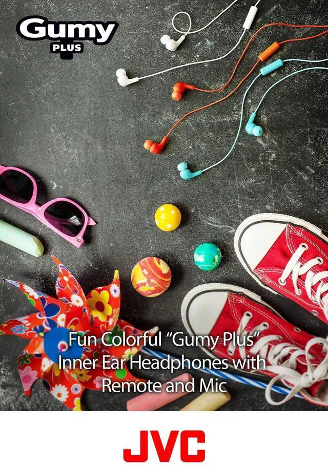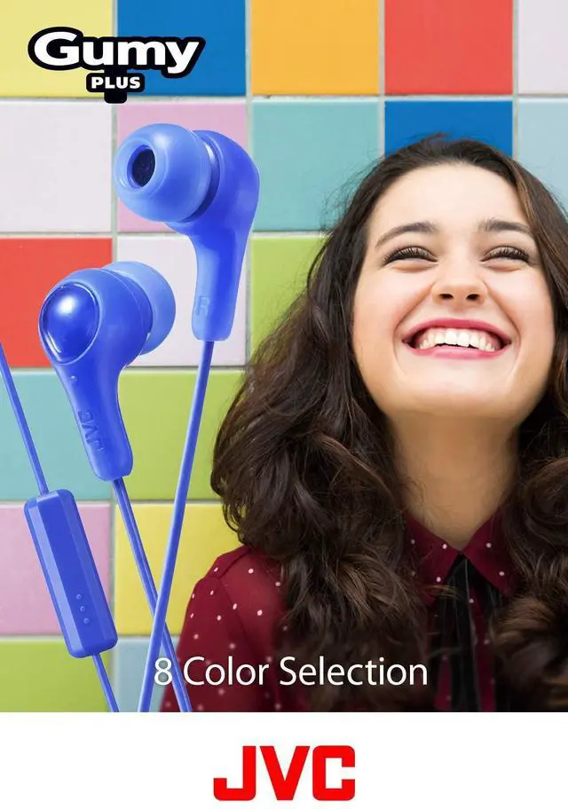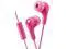 PINK GUMY In ear earbuds with stay fit ear tips and MIC. Wired 3.3ft colored cord cable with headphone jack. Small, medium, and large ear tip earpieces included. JVC GUMY HAFX7MP