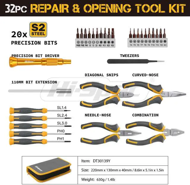 32pc Essential Tools for Electronics Repair: Perfect for hobbyists and DIYers, this 32-piece kit includes everything you need to open, repair, and assemble laptops, phones, drones, gadgets, and more; tackle any electronic project with confidence