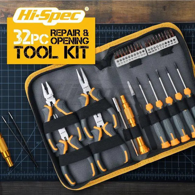 Hi-Spec 32pc Electronics Repair & Opening Tool Kit Set for Laptops, Phones, Devices, Computer & Gaming Accessories. Precision Small Screwdrivers with Pentalobe Bits for iPhones & MacBooks