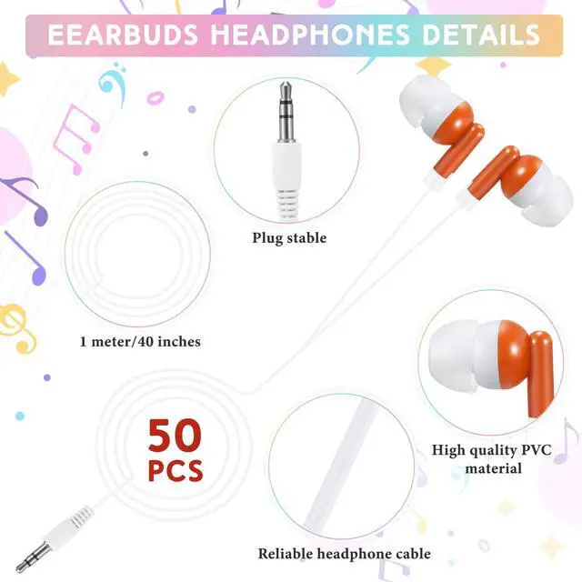 Add color to your listening experience with our earbuds. These headphones set are crafted from quality PVC and designed for your comfort. The 1m size provides ample length for use, and with 50 pieces in each pack, you have plenty to go around. Each is individually bagged, making they stay clean and new.
