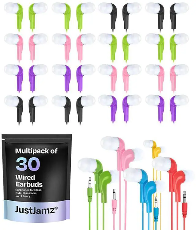 Bulk Earbuds for Classroom and Schools This 30 pack of wired earbuds is perfect for students, teachers, and group learning environments. Ideal for classrooms, libraries, and school activities.