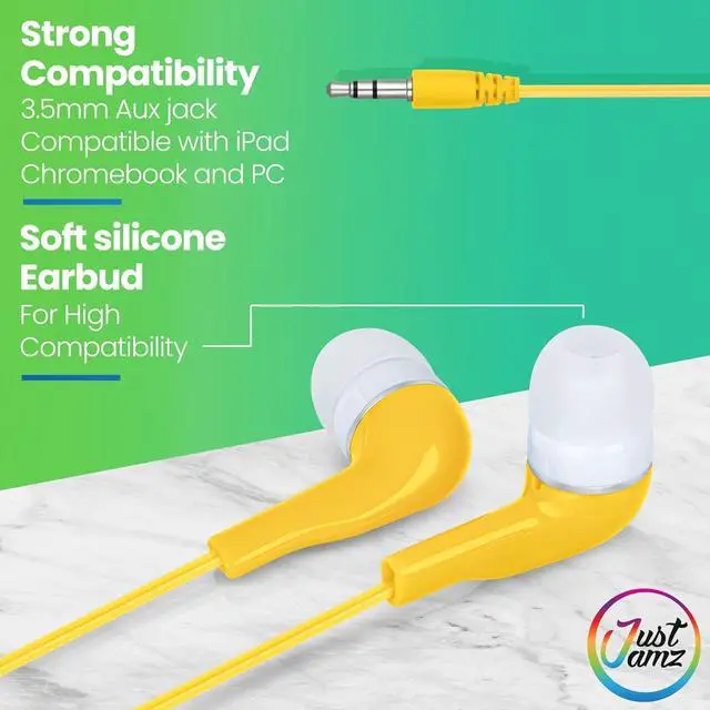 Universal Compatibility Equipped with a 3.5mm audio jack, these wired earbuds bulk work with Chromebooks, laptops, tablets, smartphones, computers, desktops, audiobook devices, and other school electronics.