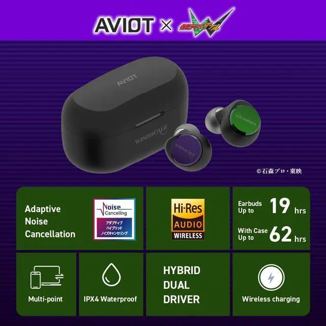 AVIOT TE-V1R-WCJ Kamen Rider W Collaboration Wireless Earbuds, Special Package, Design, Japanese Special Voice, Adaptive Noise Cancelling, Wireless Charging Case, Bluetooth 5.3