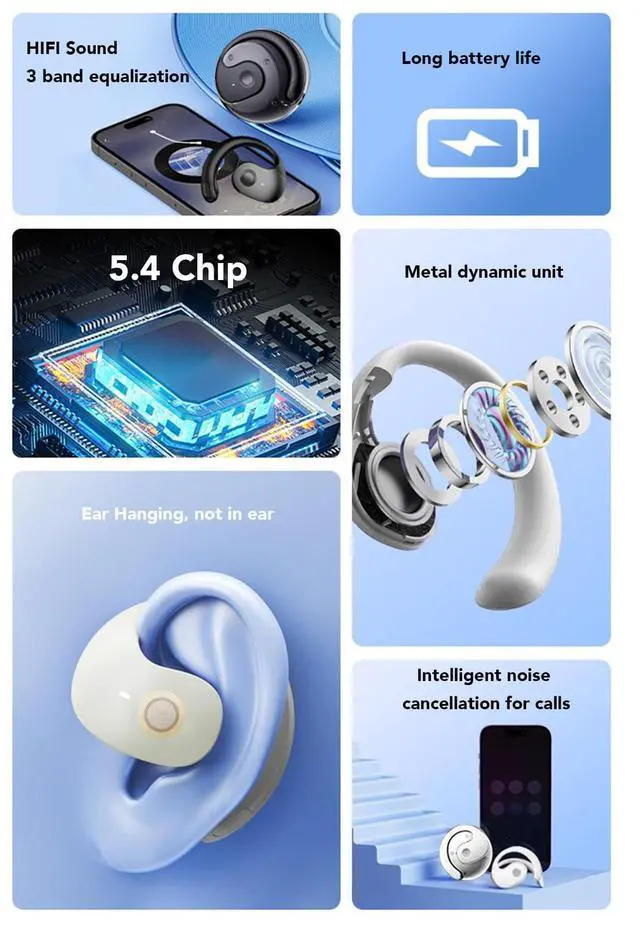 Advanced Bluetooth 5.4The wireless open earbuds feature Bluetooth 5.4, offering high stability, low power consumption, and ultra fast connectivity. Enjoy extended battery life and a remarkable 10 meter connection range. The sport headphones are compatible with a range of Bluetooth-enabled devices, including smartphones, TV, computers, and laptops.