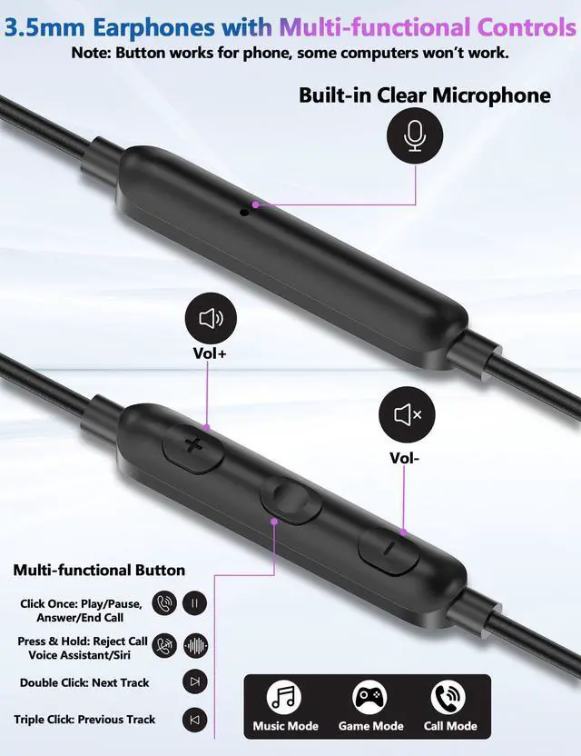 2 Pack 3.5mm Wired Earbuds for Steam Deck,for Mac Mini,for Chromebook,for Windows,for iPhone SE 6s,6 plus,6s Plus,6 5s 5c 5,for iPod Touch,for Samsung Galaxy A15 A14 A13 A12 S10 S10e S9 S8 A03S A30 Core,S6 Edge+ S5,Note 5 4 Edge,Note 9 8,A25 A23 A21 A52 A42 A32 A71 A51 A21 A11 A50 A20,for iPad Mini Air,for Google Pixel 5a 4a 4a 3a XL,MP3 MP4,for Motorola razr one,for Moto G Power,for Moto G Stylus,for Moto G Pure,for iMac,for Sony Xperia Ace 2 1 III II 5,3.5mm Android Mobile Tablet Laptop PC