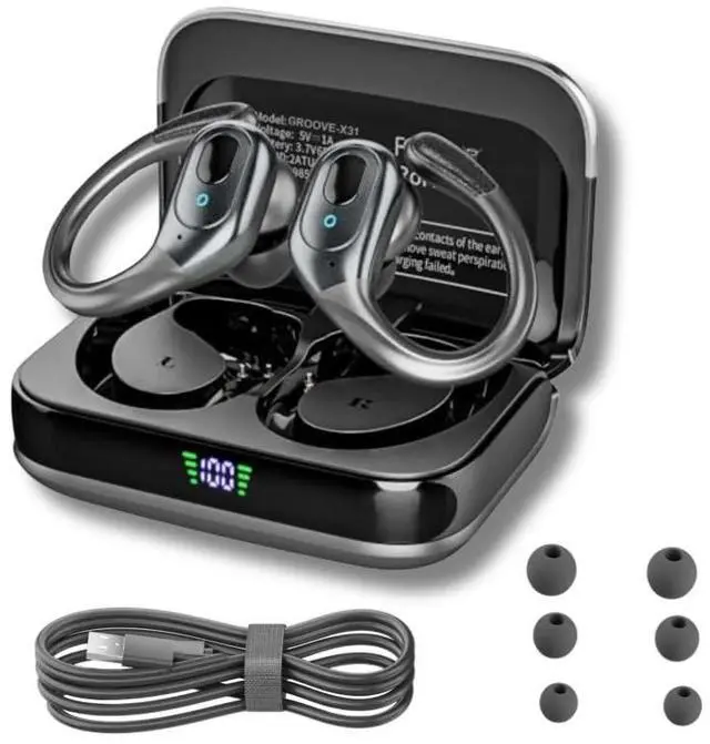 Groove Wireless Bluetooth Earbuds with Charging Case Electronics ^^ Wireless Sports Earbuds ^^ Running Ear Phones ^^ Black