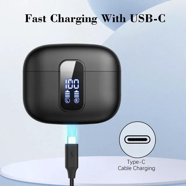Bluetooth Headphones True Wireless Earbuds Headset LED Power Display 60H Playback IPX5 Waterproof in-Ear Earbuds with Mic for Smart Phone Laptop Computer Sports (Black)