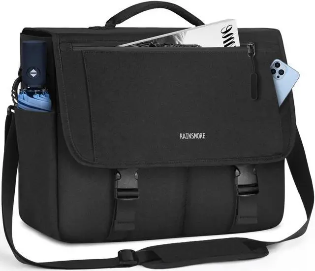 RAINSMORE Messenger Bag for Men Messenger Bag 15.6 Inch Water Resistant Laptop Bag Casual Satchel Bags for Men Large College Computer Bag Office Work Briefcase Fashion Crossbody Shoulder Handbag Black