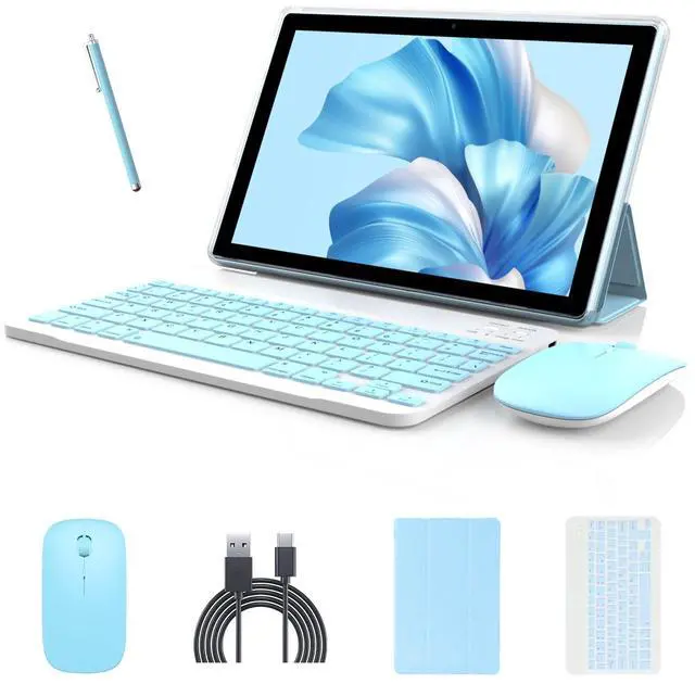 [Computer & Tablet Mode] This computer tablet, it's perfect combination of computer and tablet pc. Tablet with keyboard, wireless mouse and foldable protective case, it can flexibly turn tablet into a laptop mode, help you open the office mode at any time.