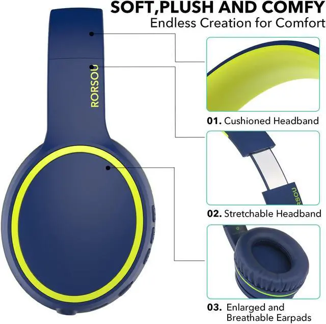 UP TO 50 HOURS PLAYTIME - RORSOU wireless headphones deliver up to 50 hours playtime on a single charge. A quick 10-minute charge gives you up to 4 hours of playtime. This wireless headset can also easily connect to other non-Bluetooth devices via a 3.5 mm audio cable, plug in the included audio cable to listen for even longer in wired mode.