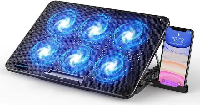 LIANGSTAR Laptop Cooling Pad with 6 Quiet Led Fans for Gaming Working with Phone Holder