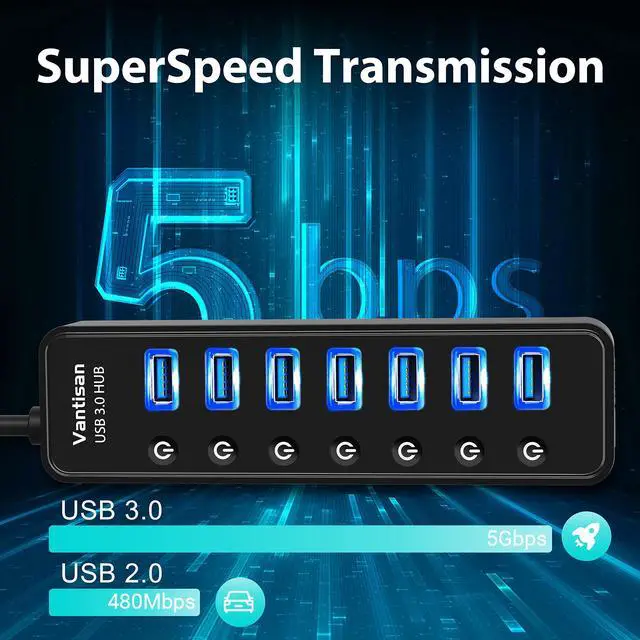 7-Port USB 3.0 Hub: Instantly expand a single USB port into 7 USB 3.0 ports, you can connect a computer with more USB peripherals such as keyboard and mouse, flash drive, printer and more