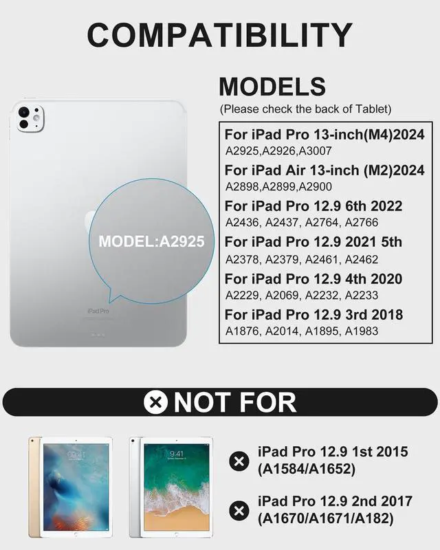 - Slim, sturdy and attractive design. The tablet fits snugly into iPad Pro 13 inch keyboard case 2024 and provide sufficient protections for daily use.