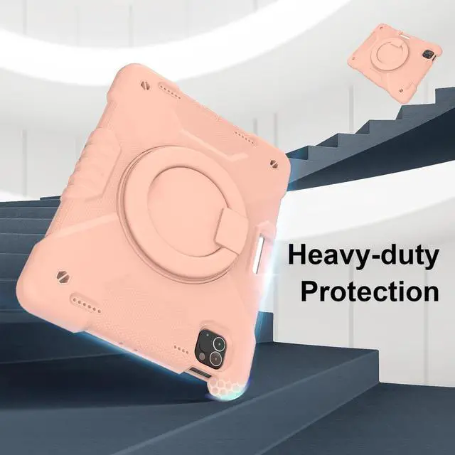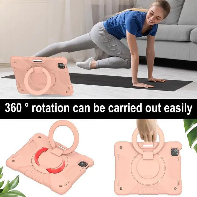 SCSVPN for iPad Air 5th/ 4th Generation 10.9 '' Case, iPad Pro 11 Inch Case 4th/3rd/2nd/1st Gen 2022 2021 2020 2018: Protection Kids Cover with Pencil Holder-Stand-Handle-Shoulder Strap, Rose Gold