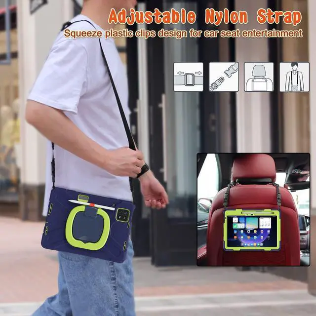 Adjustable Nylon Shoulder Strap with squeeze plastic clips for secure attachment. Enjoy tablet entertainment during long journeys.