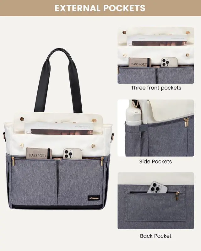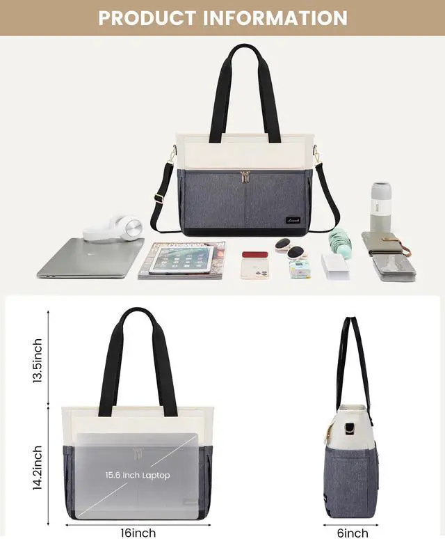 Plenty of SpaceThis tote bag for women work features a large capacity to fit a 15.6-inch laptop. With 8 internal pockets including a laptop compartment, 2 mesh pockets, and 2 slip pockets, this teacher tote bag ensures easy organization of all your essentials.