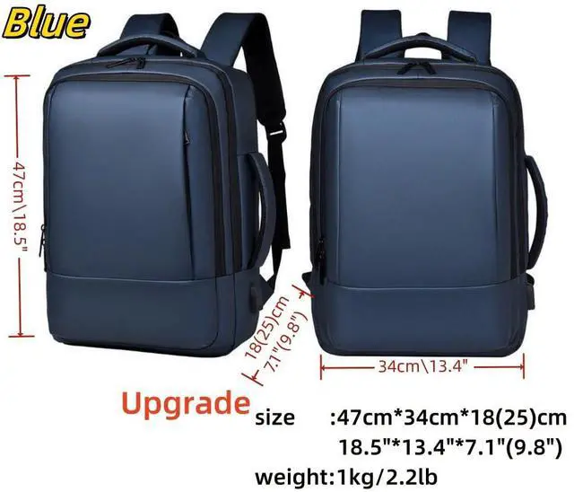SUITABLE SIZEBackpack size: 47cm*34cm*18(25)cm(18.5"*13.4"*7.1"(9.8")). Weight: 1kg/2.2lb.Suitable for 17/15.6" laptops.(The upgraded version adds a side cup pocket and the fabric is thicker).