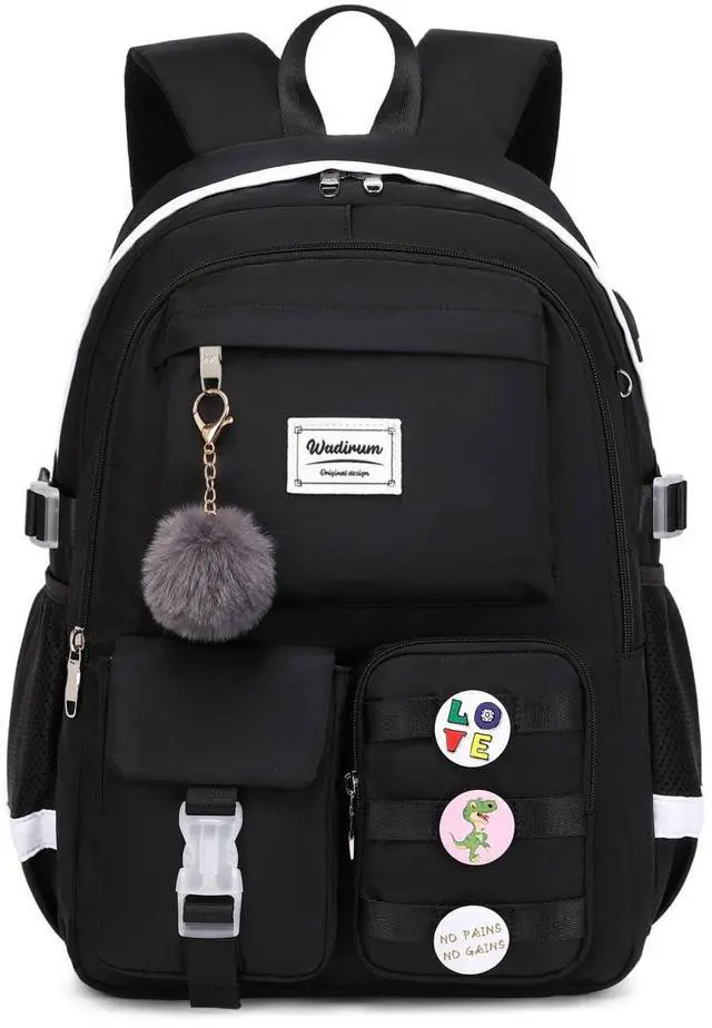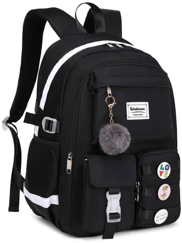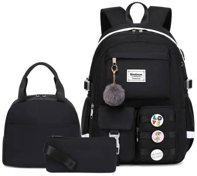 Wadirum Women Casual Backpack Set Girl School Bookbag Set Cute Laptop Ruaksack Black