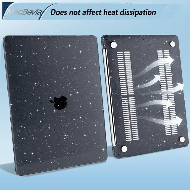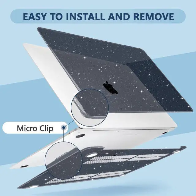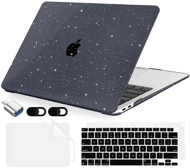MecBevia Compatible with MacBook Air 13.3 inch Case 2021-2018 Release A2337 M1 A2179 A1932 Touch ID, Plastic Hard Shell&Keyboard Cover&Screen Protector&Webcam Cover&Type-C Adapter, Sparkly Black