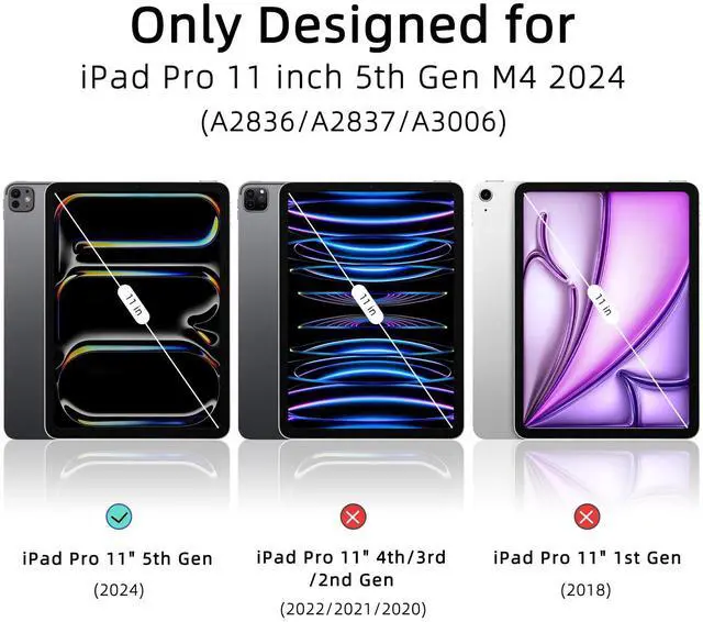Compatible ModelOnly Designed for iPad Pro 11 Inch M4 5th Gen 2024 (Model Number: A2836/A2837/A3006),Please check back bottom of your iPad to find the model number.Note: It is Not compatible with any other devices.