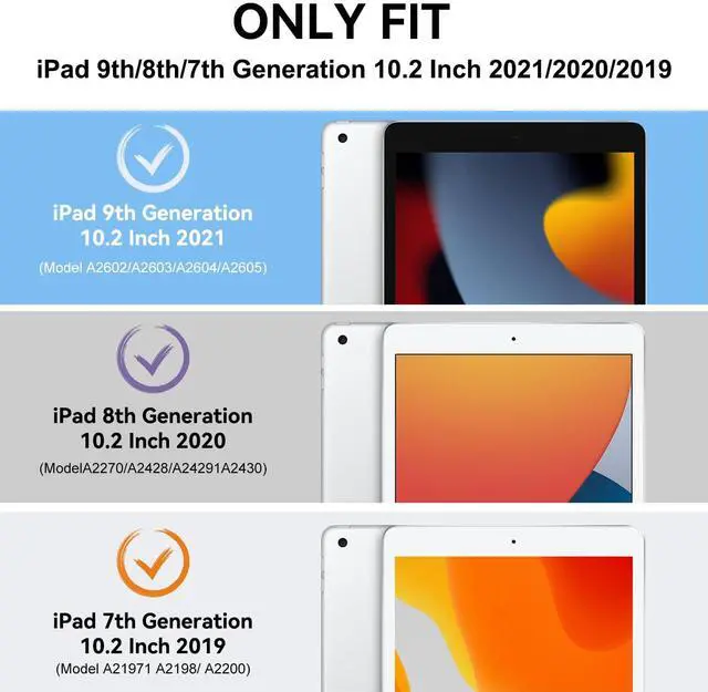 Compatible Models: ZoneFoker Case compatible with 10.2" iPad 9th Generation 2021 Release(Model: A2602/A2603/A2604/A2605)/iPad 8th Generation 2020 Release (Model: A2270/A2428/A2429/A2430)/iPad 7th Generation 2019 Release (Model: A2197/A2198/A2200) NO Screen Protector Included