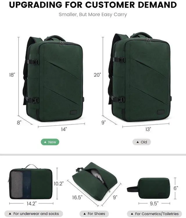 Upgrade Szie & MaterialUpgrading 8x14x18 inches with normal 40L travel backpack,meet smaller capacity demand.Upgrading polyester fabric and wet bag, more durable and practical for your daily,travel.